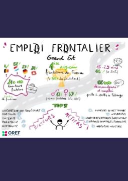 Nouvelle édition de l’inspiration visuelle de l’Oref Grand Est présentant l’importance de l’emploi frontalier dans notre région (Sources : Insee, RP 2022 ; France travail – fin 2024)