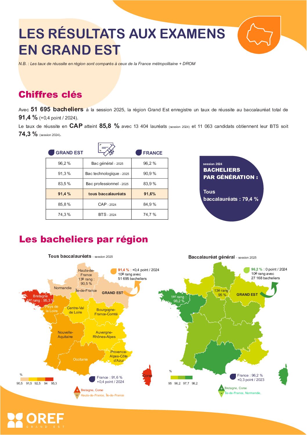 Les résultats aux examens en région Grand Est / France